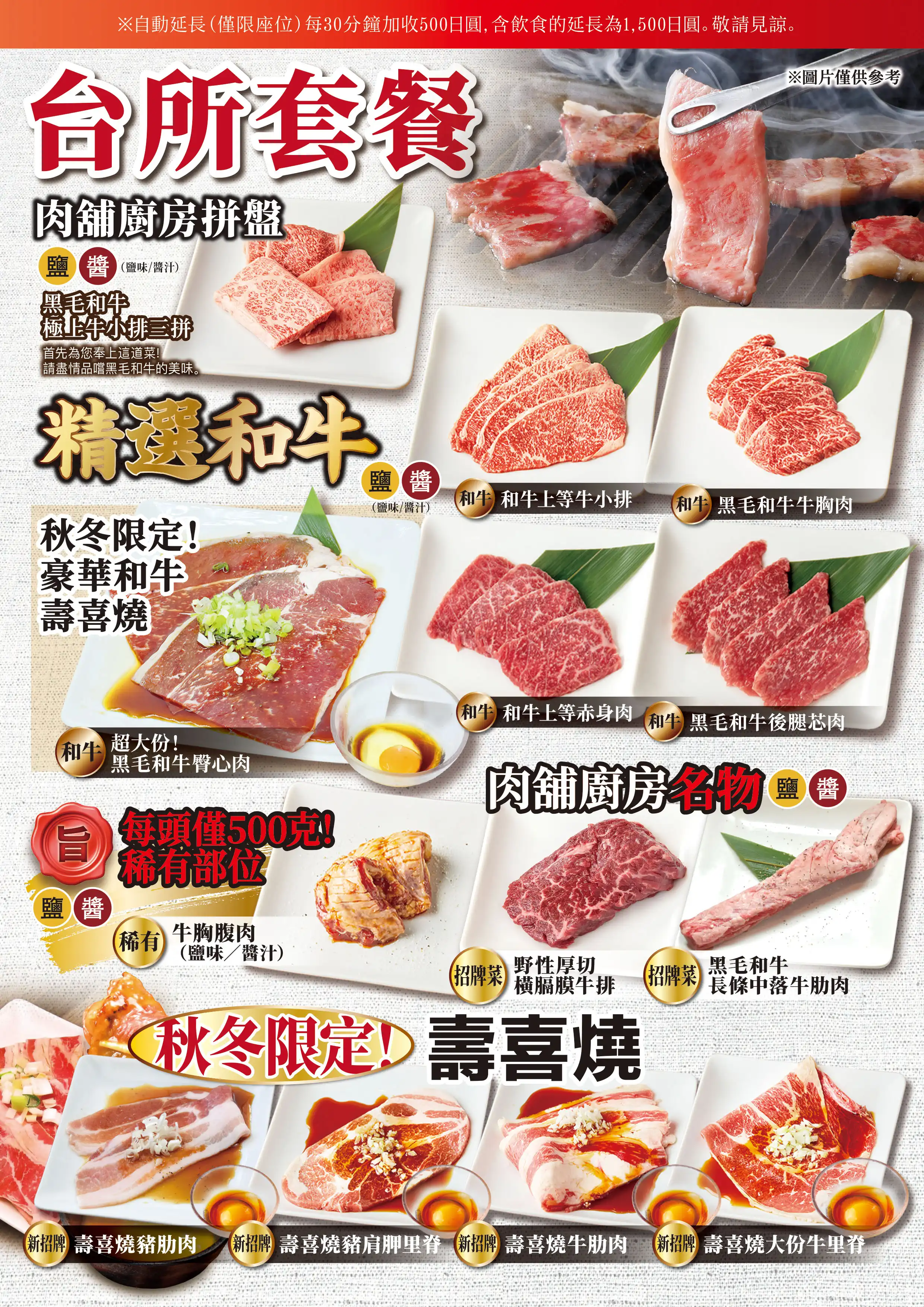 | コース内容 | 【厳選 和牛】(塩・タレ) 和牛特上カルビ(三角バラ、ザブトン)/和牛ランプ&イチボ/和牛上カルビ/黒毛和牛のブリスケ/和牛上赤身/和牛シンタマ 【肉屋の台所 盛り合せ】(塩・タレ) 黒毛和牛極上カルビ3種盛り合わせ 【肉屋の台所 名物】(塩・タレ) 黒毛和牛ロング中落カルビ/肉屋名物ワイルドカットハラミステーキ 【贅沢和牛すき焼き】 はみ出る大判!黒毛和牛うちもも肉/はみ出る大判!黒毛和牛リブサーロイン 【1頭から500g!希少部位】(塩・タレ) 希少部位ブリスケットスカート 【出汁焼きしゃぶ】 出汁焼きしゃぶ牛カルビ/出汁焼きしゃぶ牛ロース/出汁焼きしゃぶ豚カルビ/出汁焼きしゃぶ豚肩ロース 【すき焼き】 すき焼き牛カルビ/すき焼き大判牛ロース/すき焼き豚カルビ/すき焼き豚肩ロース 【贅沢和牛 出汁焼きしゃぶ】 黒毛和牛 うちもも 出汁焼きしゃぶ/黒毛和牛 リブサーロイン 出汁焼きしゃぶ 【牛・豚・鶏】(塩・タレ) 厚切り牛タン/牛タン/王道ハラミ/炙りバラカルビ/ロース/豚タン/豚ハラミ/豚バラカルビ/豚肩ロース/トントロ/鶏もも/厚切りベーコン/ソーセージ 【復活の壷漬け】 壷漬けホルモンミックス 【ホルモン】(塩・タレ・味噌) やわらか旨豚ホルモン/ミノ/黒毛和牛ぷりぷり味噌ホルモン(小腸)/絶品!旨味噌マルチョウ/レバー 【ネギ塩】 牛タン/ハラミ/タン/牛バラカルビ/ロース/豚カルビ/トントロ/豚肩ロース/鶏もも 【ニンニクだれ】 牛タン/ハラミ/タン/牛バラカルビ/ロース/豚カルビ/トントロ/豚肩ロース/鶏もも 【旨辛だれ】 牛タン/ハラミ/タン/牛バラカルビ/ロース/豚カルビ/トントロ/豚肩ロース/鶏もも 【サイドメニュー】 手仕込み白菜生キムチ/白菜キムチ・カクテキ/キムチ盛り合わせ/オイキムチ/もやしナムル/小松菜ナムル/シーザーサラダ/肉屋のサラダ(特製塩ごまだれ)/まき野菜/塩だれキャベツ/おつまみメンマ/ポテトサラダ/ごはん/肉屋のカレー/一口冷麺一/口冷麺(梅味)/コムタンスープ/韓国のり/おつまみうずら/チヂミ/ビビンバ 【肉屋のTKGシリーズ】 肉屋のTKG しょうゆ・塩/肉屋の自家製肉味噌TKG/肉屋のTKGネギ油 【焼き野菜・ホイル焼き】 焼き野菜盛り/にんにく焼き/4種のきのこのバター焼き/コーンバター/海鮮アヒージョ/ヤンニョム海鮮盛り 【海鮮】 海鮮盛り合せ(エビ・イイダコ・ホタテ) 【デザート】 杏仁豆腐/フルーツポンチ 生チョコアイス・チョコ 生チョコアイス・バニラ 生チョコアイス・抹茶 |