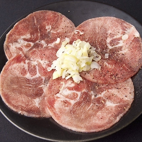 牛タンをなが~くカットしました。万能ねぎと白髪ねぎを巻いてお召し上がりいただきます。